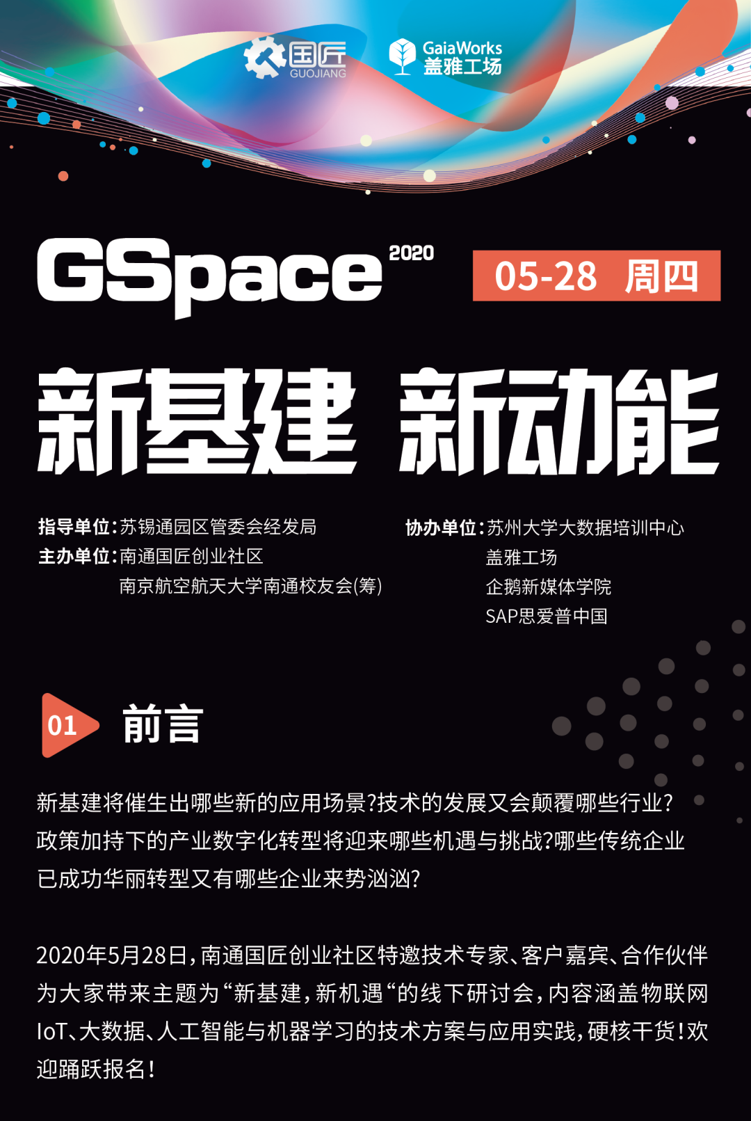 2020年5月28日下午两点,南通国匠创业社区特邀技术专家、客户嘉宾、合作伙伴为大家带来主题为「新基建,新机遇」的线下研讨会,内容涵盖物联网 IoT、大数据、人工智能与机器学习的技术方案与应用实践,硬核干货!